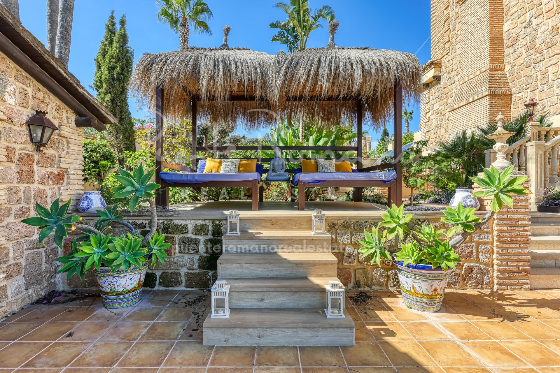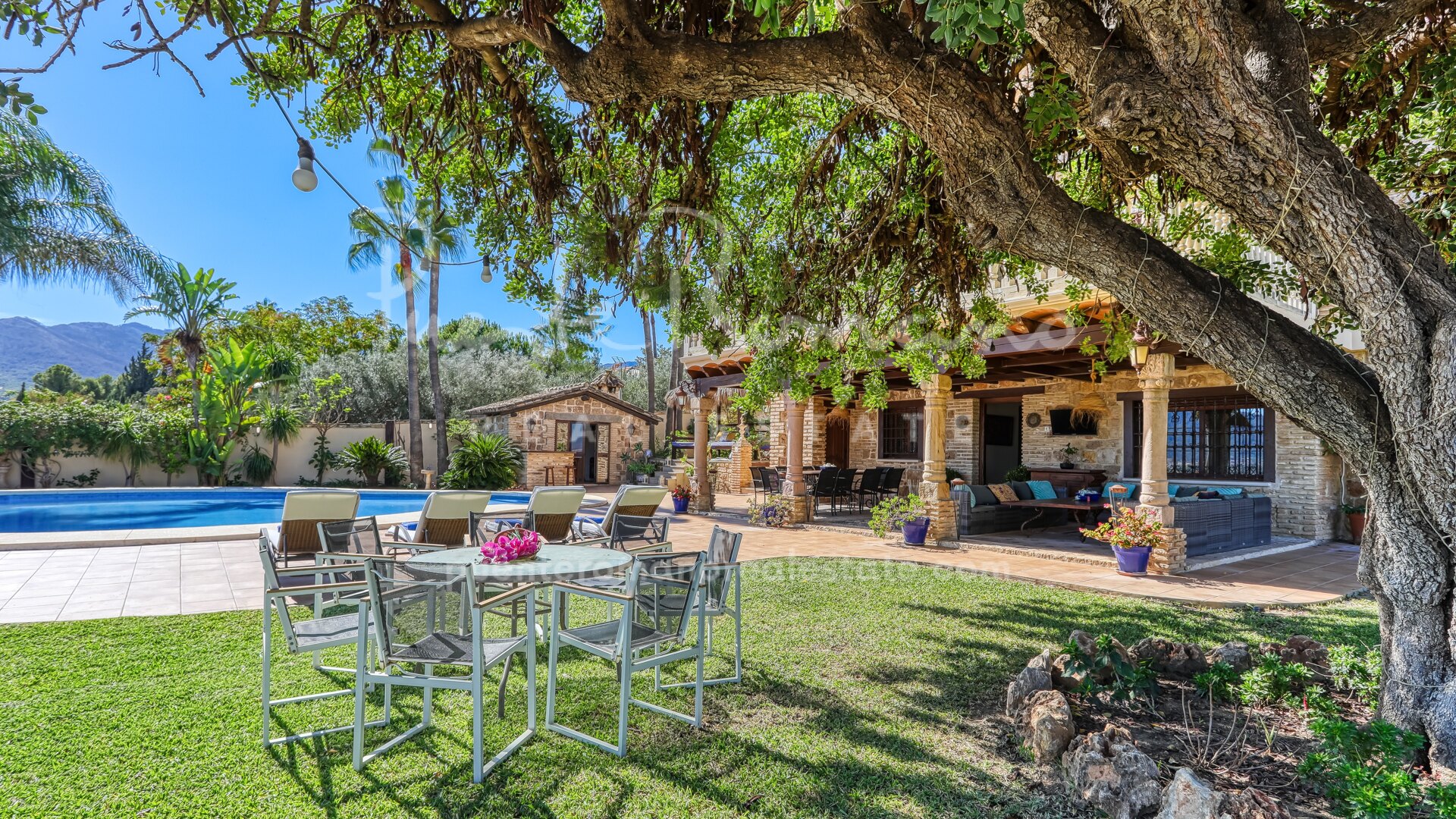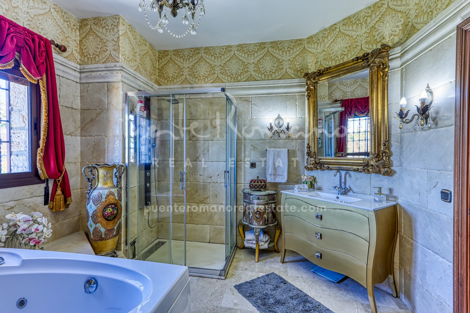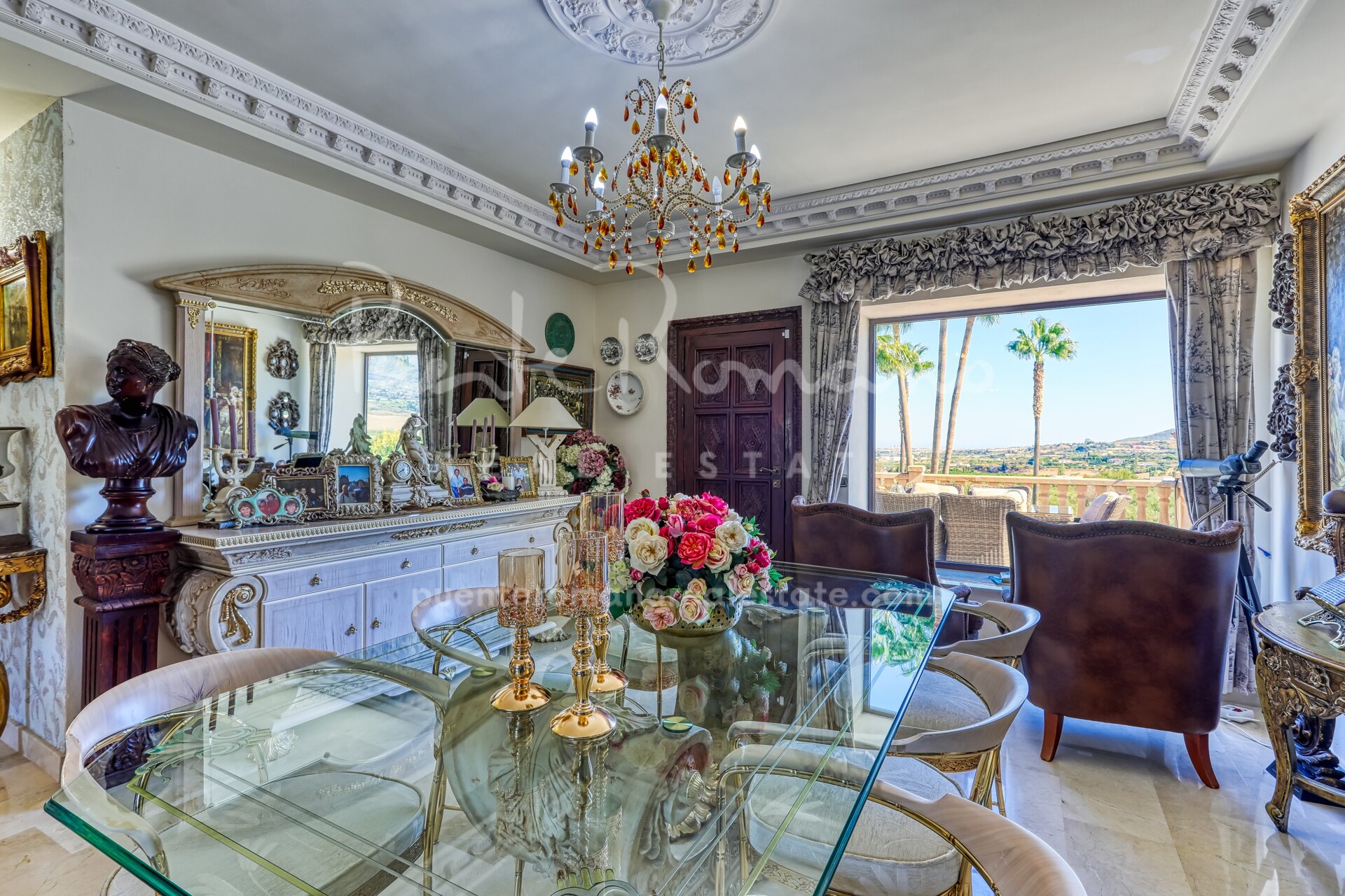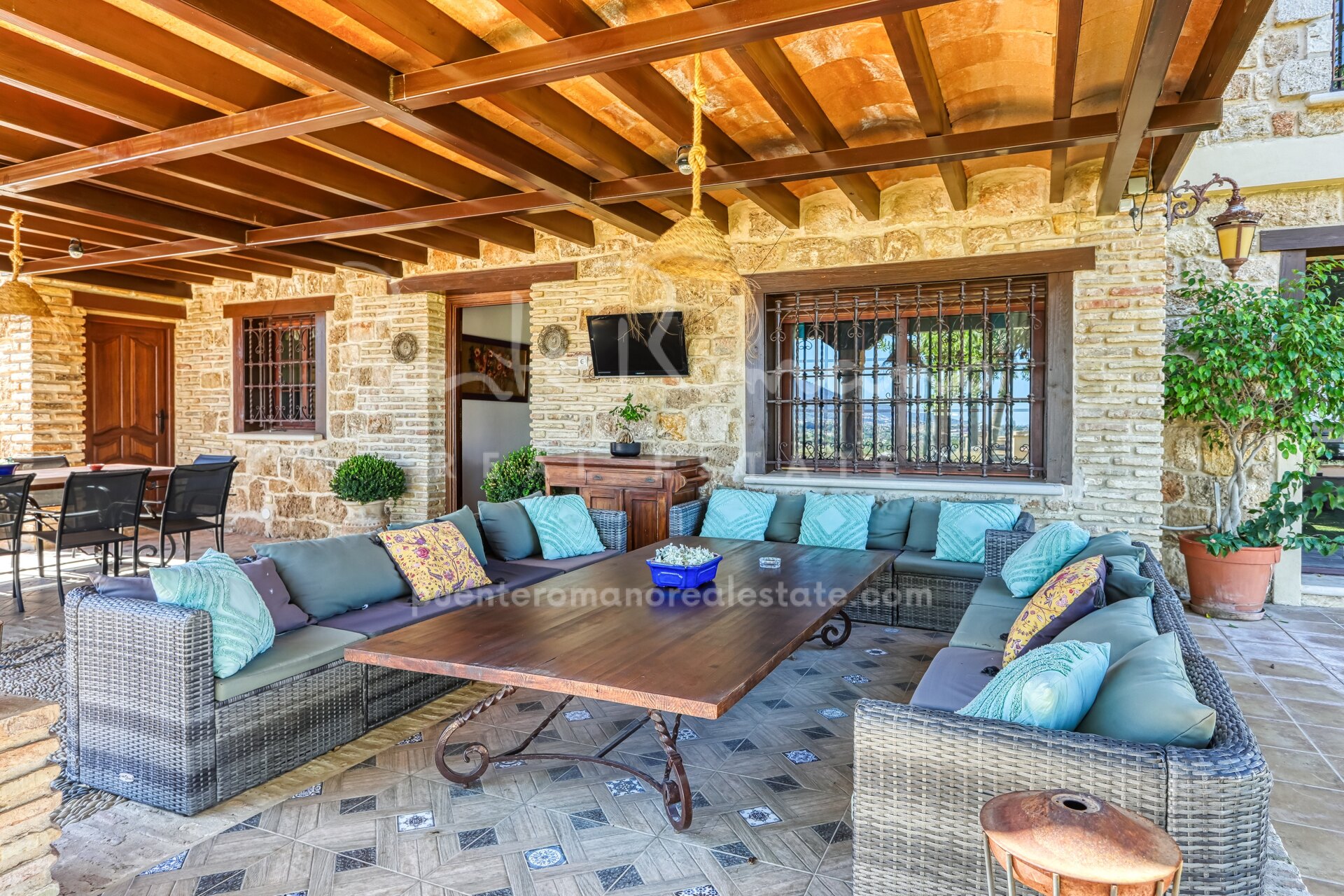 Exceptional very private estate, located in a quiet area with unbeatable panoramic views of the coast and the mountains, but only 20 minutes from Malaga airport and the beach. It is accessed by a wide access for vehicles, with very large spaces, surrounded by palm trees and a mature garden, with a central source and carport for several vehicles.