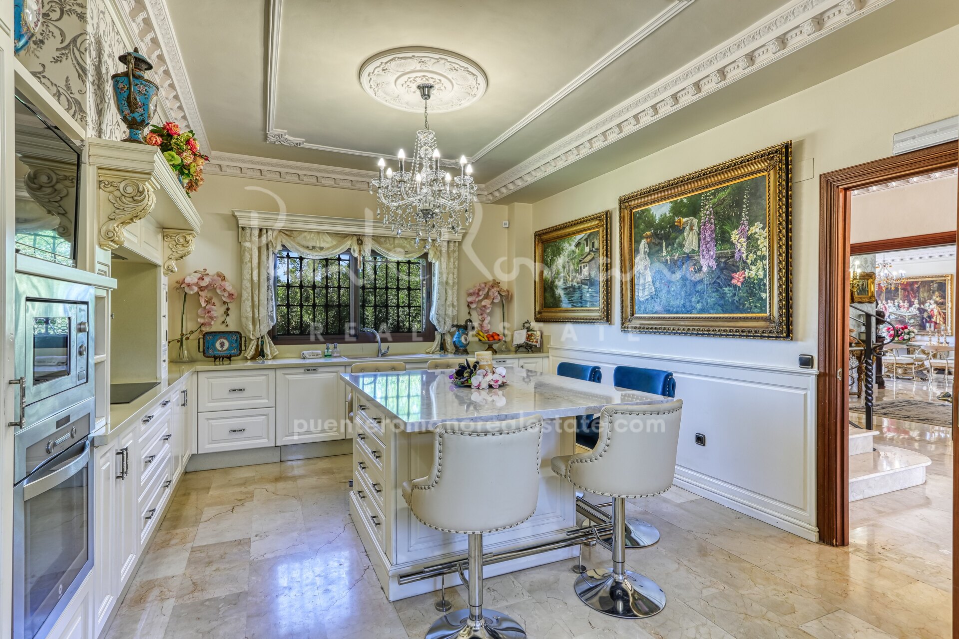 In addition, it has a separate apartment with kitchen and bathroom, two separate garages and storage rooms. Built with top quality materials, it also includes underfloor heating and air conditioning.